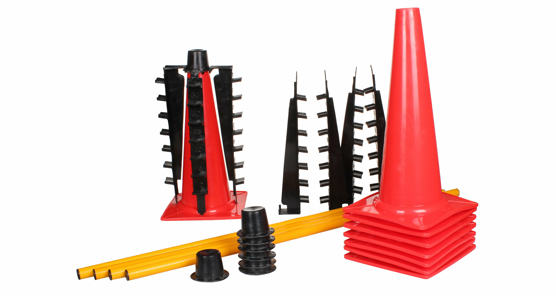 Jedna sada sa skladá z dvoch kužeľov, dvoch držiakov, s niekoľkými úrovňami, ktoré sa prichytia na kužele (46 cm) a jednej PVC tyče (100 cm).