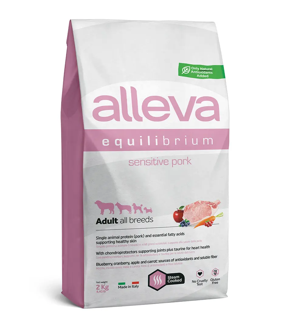 Alleva SP EQUILIBRIUM dog adult sensitive all breeds pork 2 kgSkladom16,61 €/ KS13,50 € bez DPH