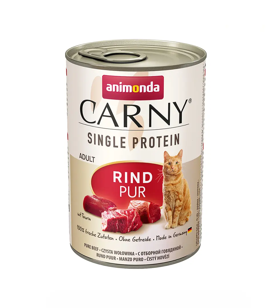 Carny® Single Protein predstavuje vyváženú výživu na najvyššej úrovni - len s jedným zdrojom živočíšnych bielkovín - pre dospelé mačky od 1 do 6 rokov. Vyrobené zo 100 % čerstvých mäsových surovín a s repkovým olejom ako prirodzeným zdrojom omega-3 mastných kyselín. Krmivo Carny Single Protein je vyrobené bez obilnín, sóje, cukru, zvýrazňovačov chuti, farbív a konzervačných látok a poskytuje dospelým mačkám všetky dôležité živiny.