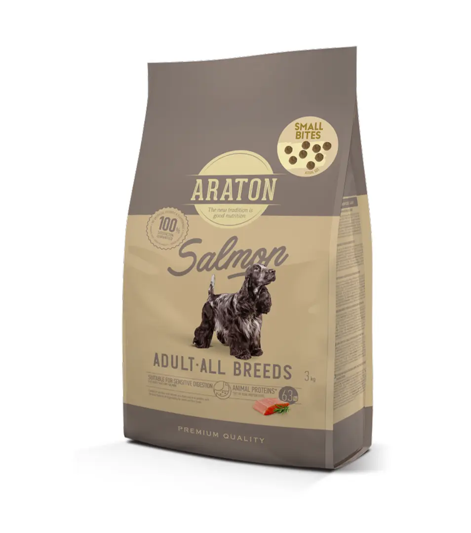 ARATON dog adult all breed salmon small 3 kgSkladom9,07 €/ KS7,37 € bez DPH