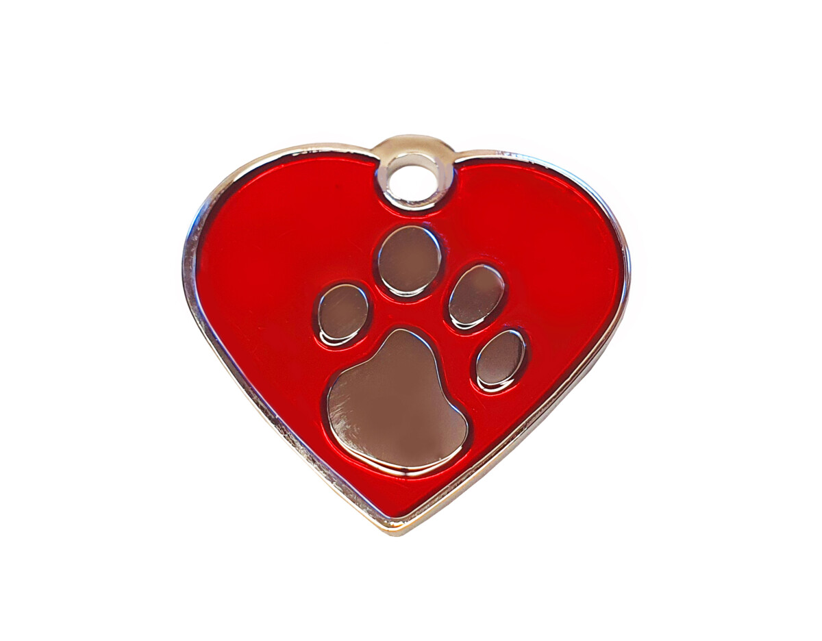 Tato známka je vyrobená z nerez oceli. Na lícové straně je zdobená stříbrnou tlapkou v kombinaci barvy, barva se neodírá. Na rub lze gravírovat Vámi zvolený text. Známka je vhodná pro malá, střední i velká plemena.