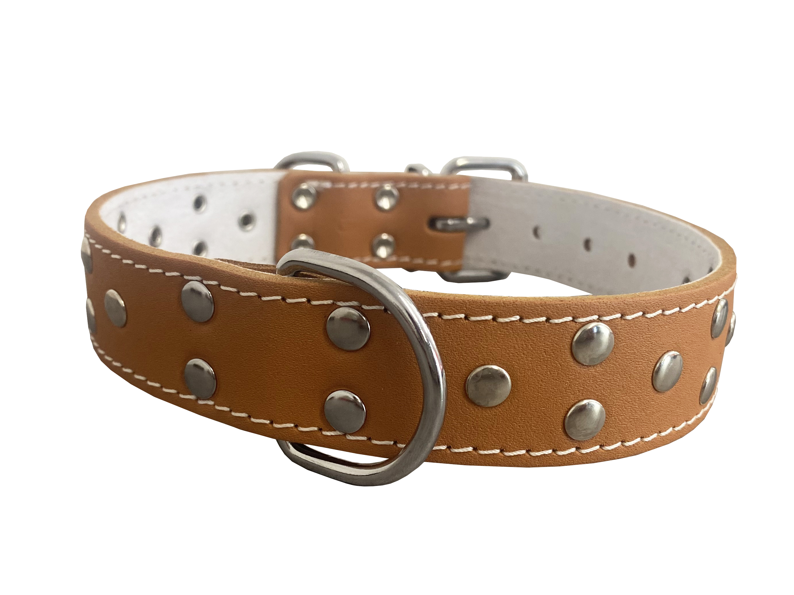 BAFPET Kožený obojek podšitý, zdobený nýty Barva: Přírodní, Rozměr: 30mm x 65cm /49-59/ 01126