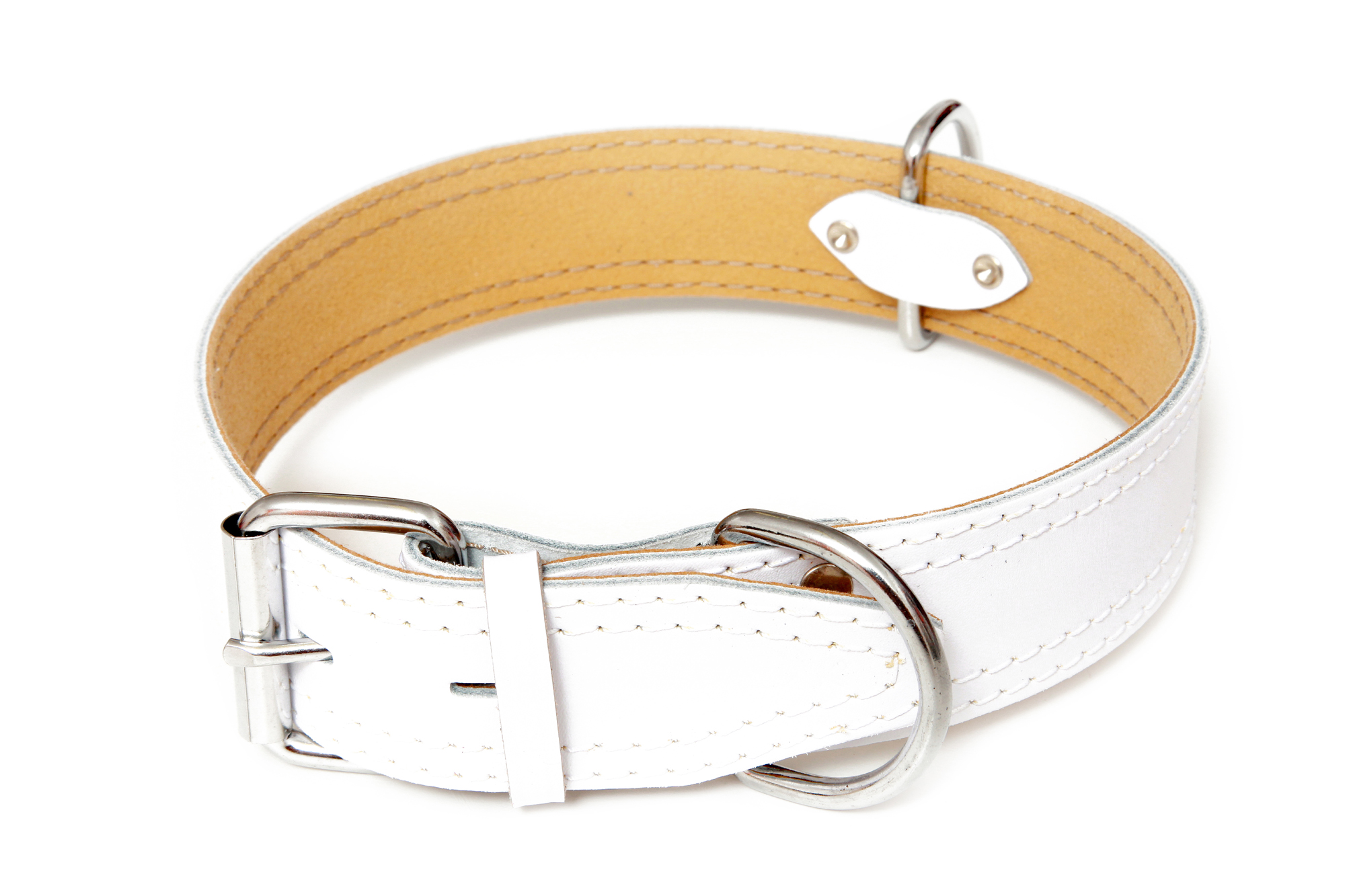 Kožené obojky jsou vyrobené z kvalitní vrchové hovězí kůže dosahují velké pevnosti, jsou zdobené prošitím režnou nití do barvy obojku. Jsou určé pro střední a velká plemena.