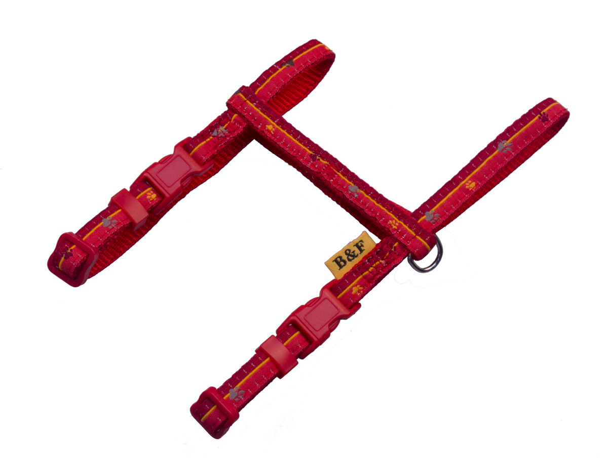 BAFPET Popruhový postroj LABKY PRÚŽOK Farba: Červená, Veľkosť: 10mm x OH 26-38cm 18411TP