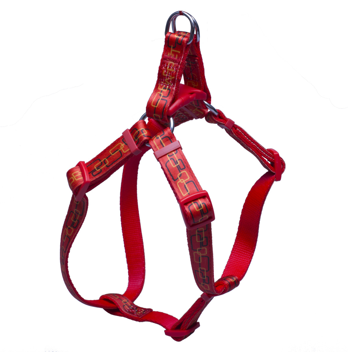 Postroje sú vyrobené z popruhu s motívom obdĺžnikov. Popruhy sú pevne prešité, na všetkých častiach je možnosť štelovania pre obvod krku, hrudného koša a hrudníka. Sú vhodné pre stredné plemená.