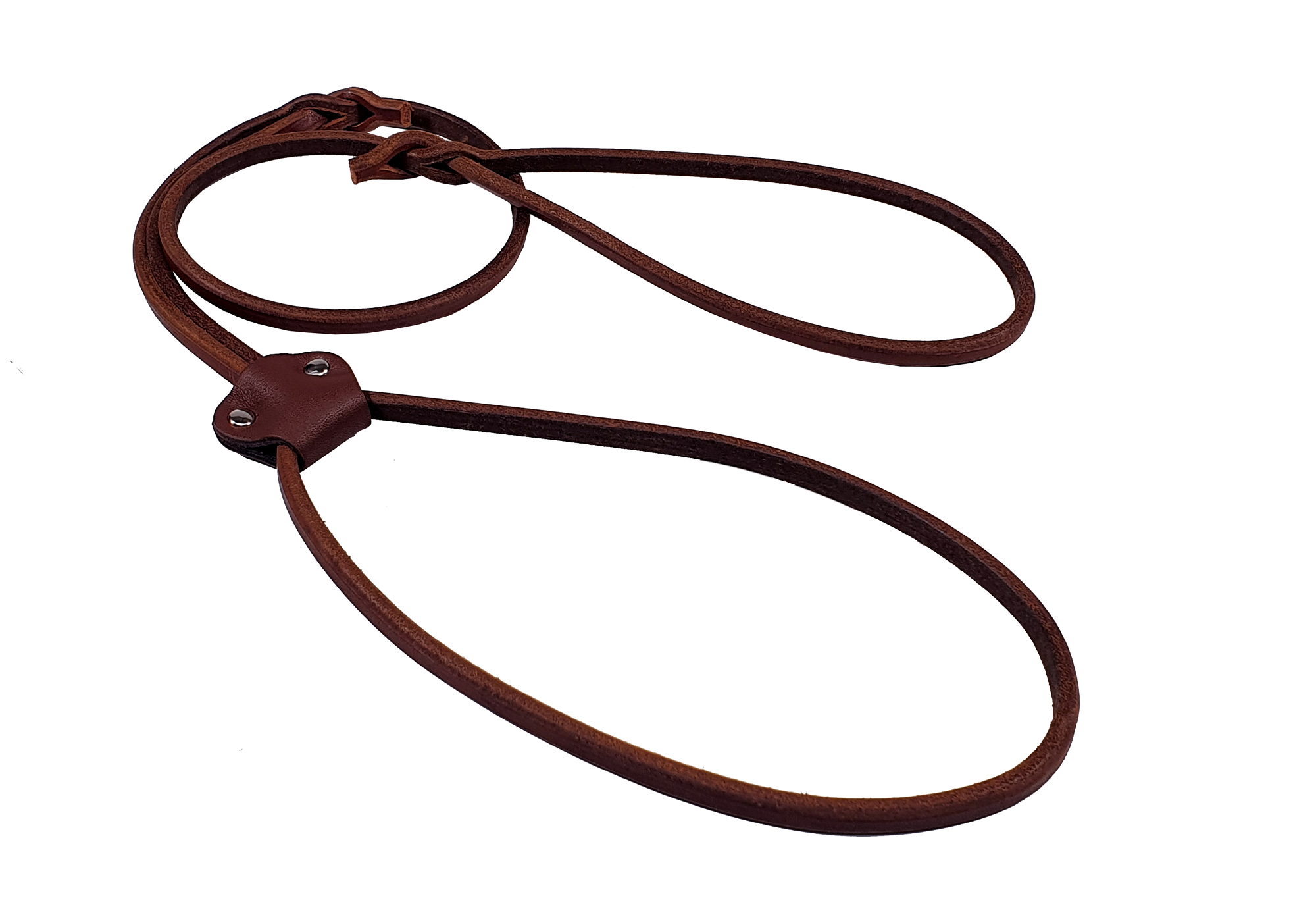 Předváděcí vodítka jsou vyrobena z pevné kulaté kůže. U vodítek v průměr 4mm jsou spoje v uchu i očka pevně přidělány plíškem, u průměru 6mm a 8mm jsou napevno propleteny v uchu a ve smyčce. Smyčka je vybavena koženou posuvnou částí, která umožňuje posouvat nahoru a dolu, tím zmenšujete a zvětšujete obvod smyčky, dle potřeb a obvodu krku pejska. Vodítka jsou vhodná pro střední a velká plemena. O kůži je nutno se starat vhodnými přípravky určenými pro kůži.