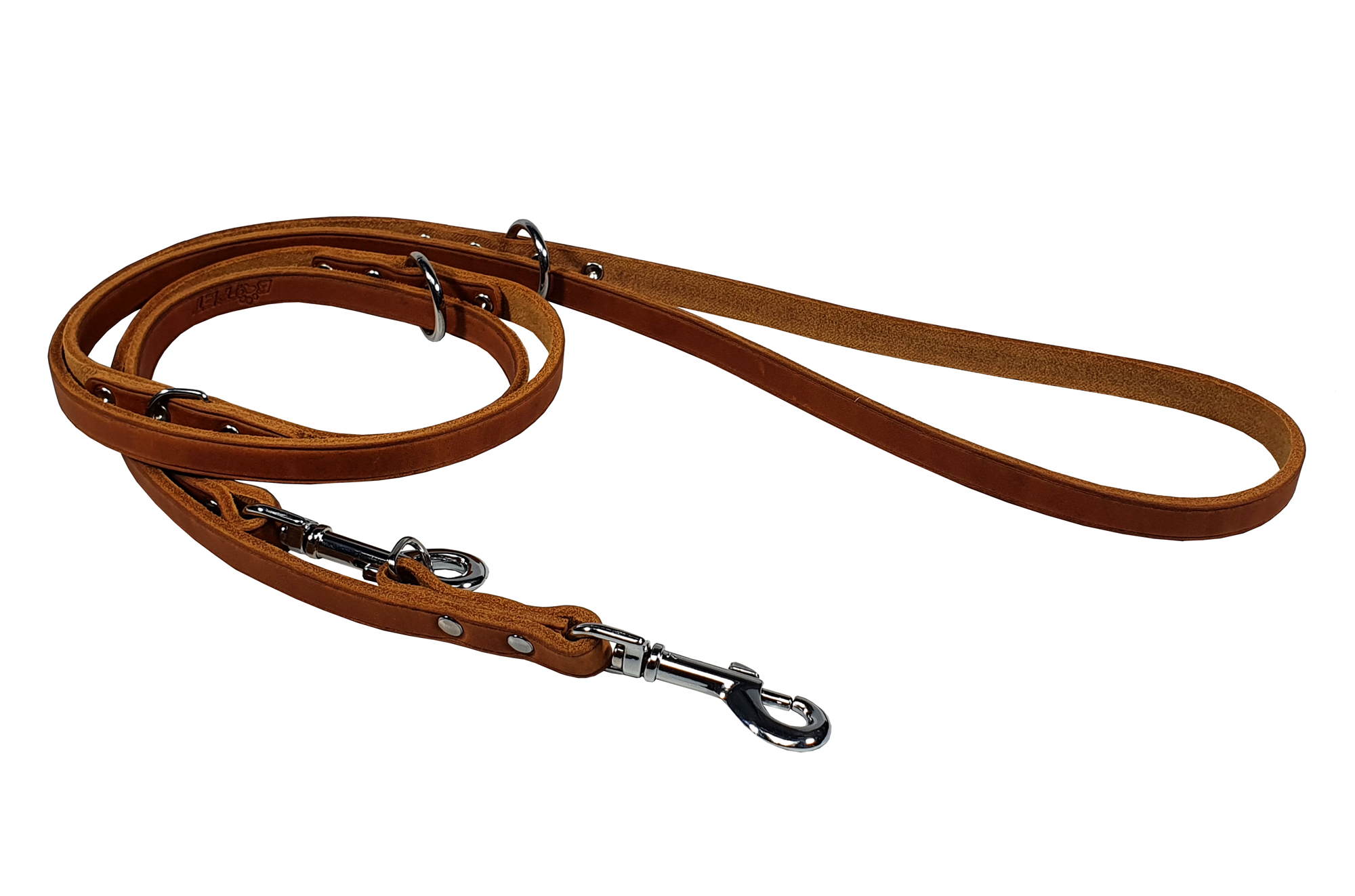 Prepínacie vôdzky sú vyrobené z veľmi príjemnej mastenej hovädzej kože. Spoje sú pevne spojené nitmi a tak dosahujú maximálnu pevnosť. Pre možnosť skrátenia či predĺženia sú vodítka vybavené niekoľkými krúžkami. Sú vhodné pre stredné a veľké plemená.
