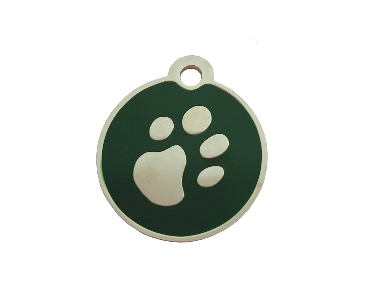 Tato známka je vyrobená z nerez oceli. Na lícové straně je zdobená stříbrnou tlapkou v kombinaci barvy, barva se neodírá. Na rub lze gravírovat Vámi zvolený text. Známka je vhodná pro malá, střední i velká plemena.