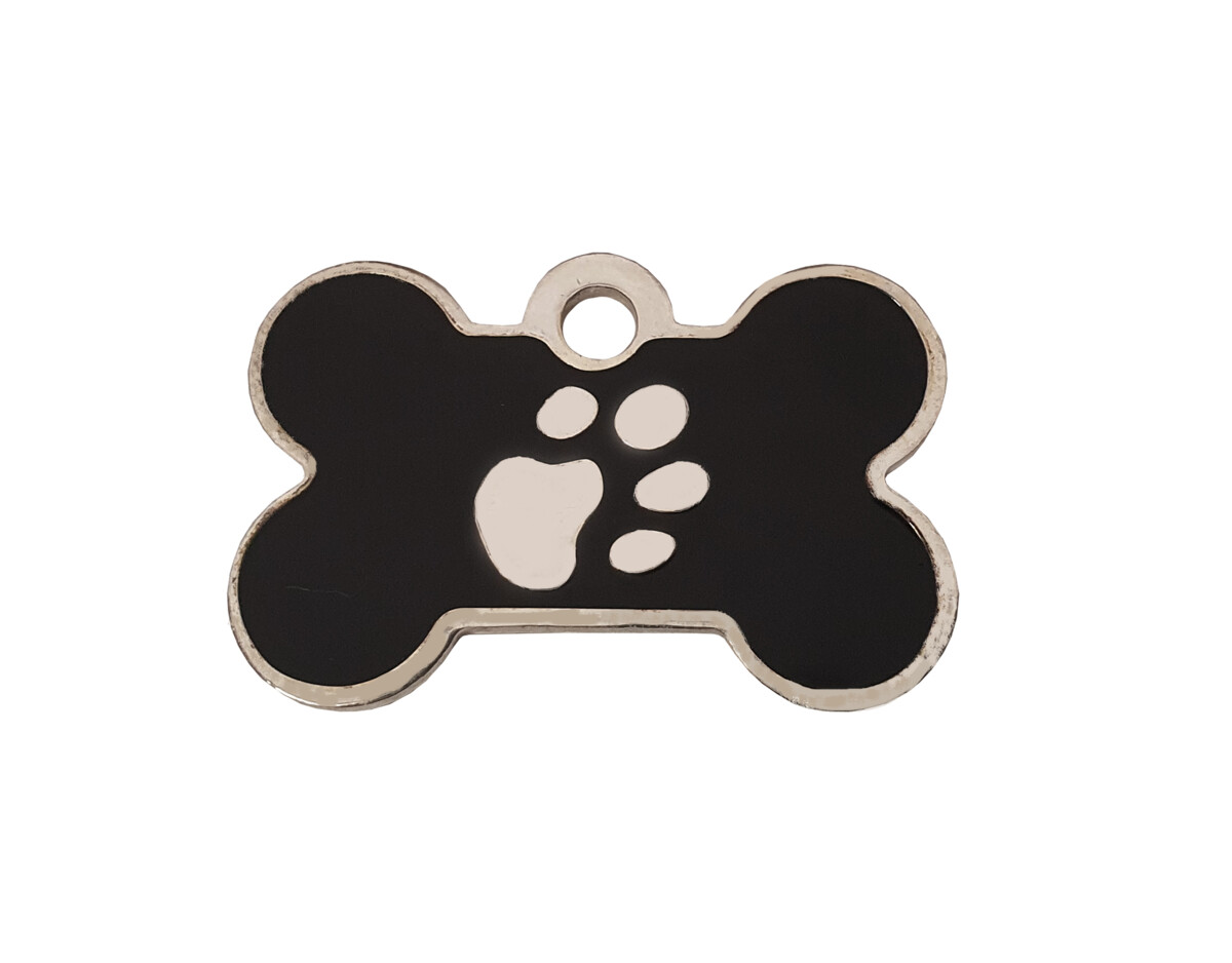 Tato známka je vyrobená z nerez oceli. Na lícové straně je zdobená stříbrnou tlapkou v kombinaci barvy, barva se neodírá. Na rub lze gravírovat Vámi zvolený text. Známka je vhodná pro malá, střední i velká plemena.