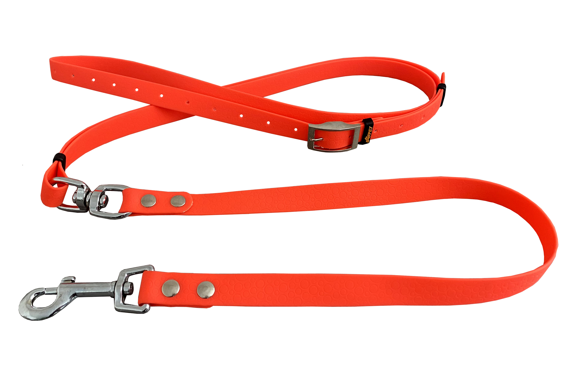 Vypúšťacie vôdzky Polytrace sú vyrobené zo špeciálne upraveného popruhu, ktorý je pevný ale aj odolný voči vode. V šírke 15 mm pre malé plemená av šírke 20 mm. Časť cez telo je nastaviteľná podľa požadovaného obvodu, spodná časť na prichytenie psa je na pevno ukončená hákovou karabínou. Kolekcia je určená pre všetky typy loveckých plemien.