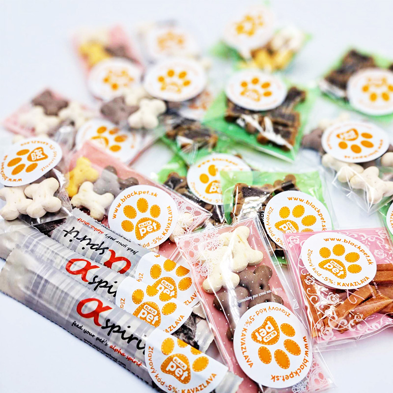Balíček obsahuje 50 ks porciovaných sáčkov pamlskov, k tomu profesionálnu prezentáciu vašej prevádzky a podporu na sociálnych sieťach.