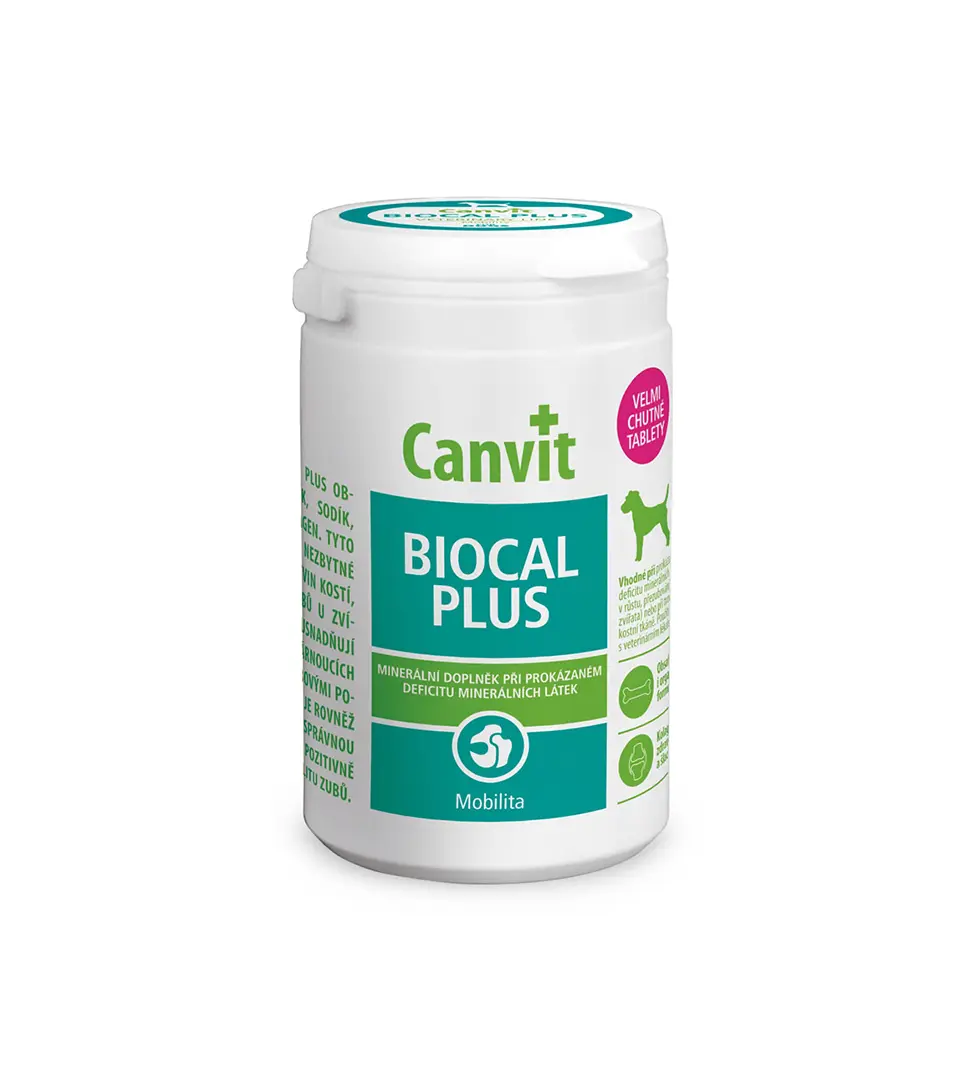 Canvit Biocal Plus je zdrojom vápnika a fosforu s vysokou biologickou dostupnosťou obohatený kolagénom na podporu správneho vývoja, rastu a regenerácie kostí, kĺbov a zubov. Canvit Biocal Plus preventívne zabraňuje nedostatku vápnika u dojčiacich súk.