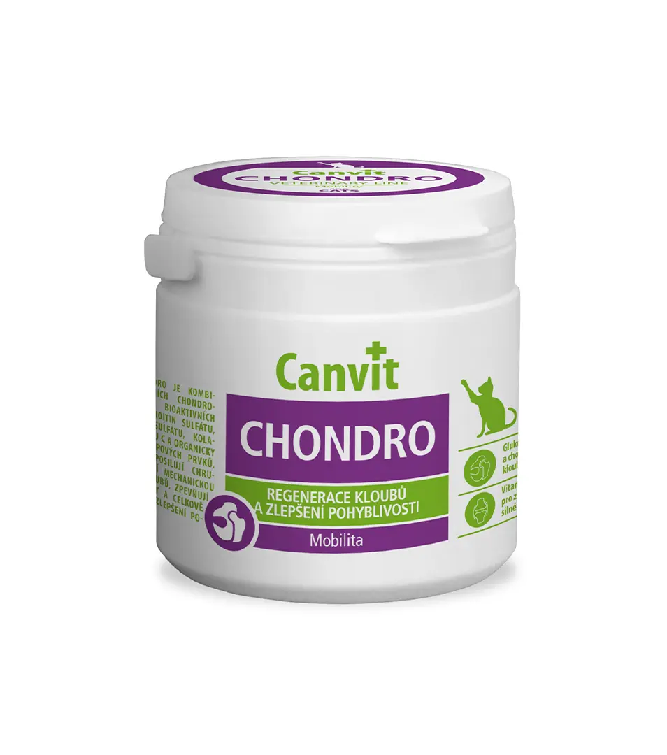 Canvit Chondro je zdrojom komplexnej kĺbovej výživy na regeneráciu a ochranu chrupaviek, väzov a zlepšenie hybnosti kĺbov u mačiek.