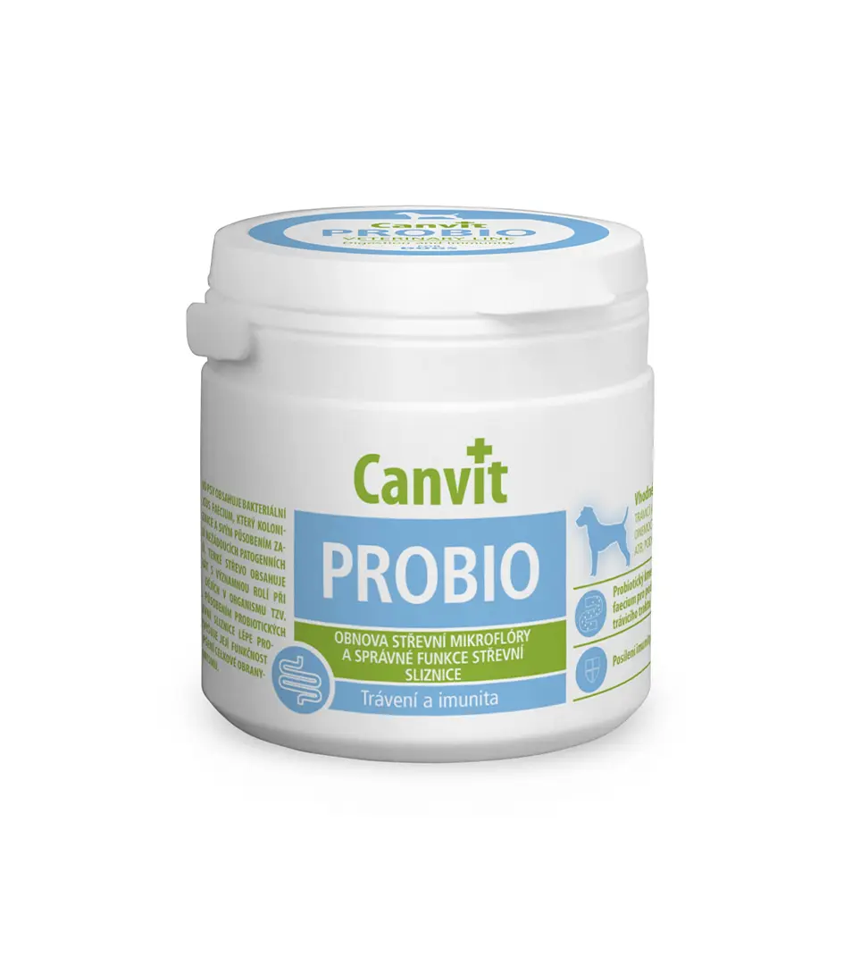 Zažívací aparát obsahuje obrovské množstvo priateľských (nepatogénnych) baktérií, ktoré sú dôležité pre trávenie, zažívanie a obranyschopnosť organizmu. V prípade akéhokoľvek ochorenia zažívacieho aparátu alebo pri liečbe antibiotikami sa naruší rovnováha medzi baktériami čreva a dochádza k prerastaniu patogénnych baktérií. Táto zmena sa prejaví hnačkou, mäkkým trusom alebo zvýšenou plynatosťou. Canvit Probio je komplexom probiotík, probiotík a vitamínov, ktoré bránia prerastaniu patogénnych baktérií a podporuje imunitu čreva pri hnačkových ochoreniach alebo liečbe antibiotikami.