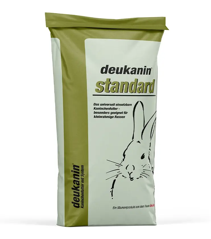 Deukanin standard je univerzálne krmivo pre odchov a výkrm králikov. Pre svoj znížený obsah energie je vhodné najmä pre zdrobnené a malé plemená králikov, chovné králiky mimo chovateľskej sezóny a výkrmové králiky v záverečnej fáze výkrmu. Deukanin Standard sa dá veľmi vhodne kombinovať s inými krmivami Deukanin pre dosiahnutie optimálnej kondície vašich králikov.