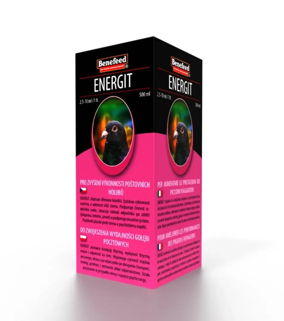 ENERGIT obsahuje špecifický komplex látok zvyšujúci výkonnosť poštových holubov. Všetky aktívne látky sú vo forme, ktorá zabezpečí maximálnu účinnosť každej z nich.