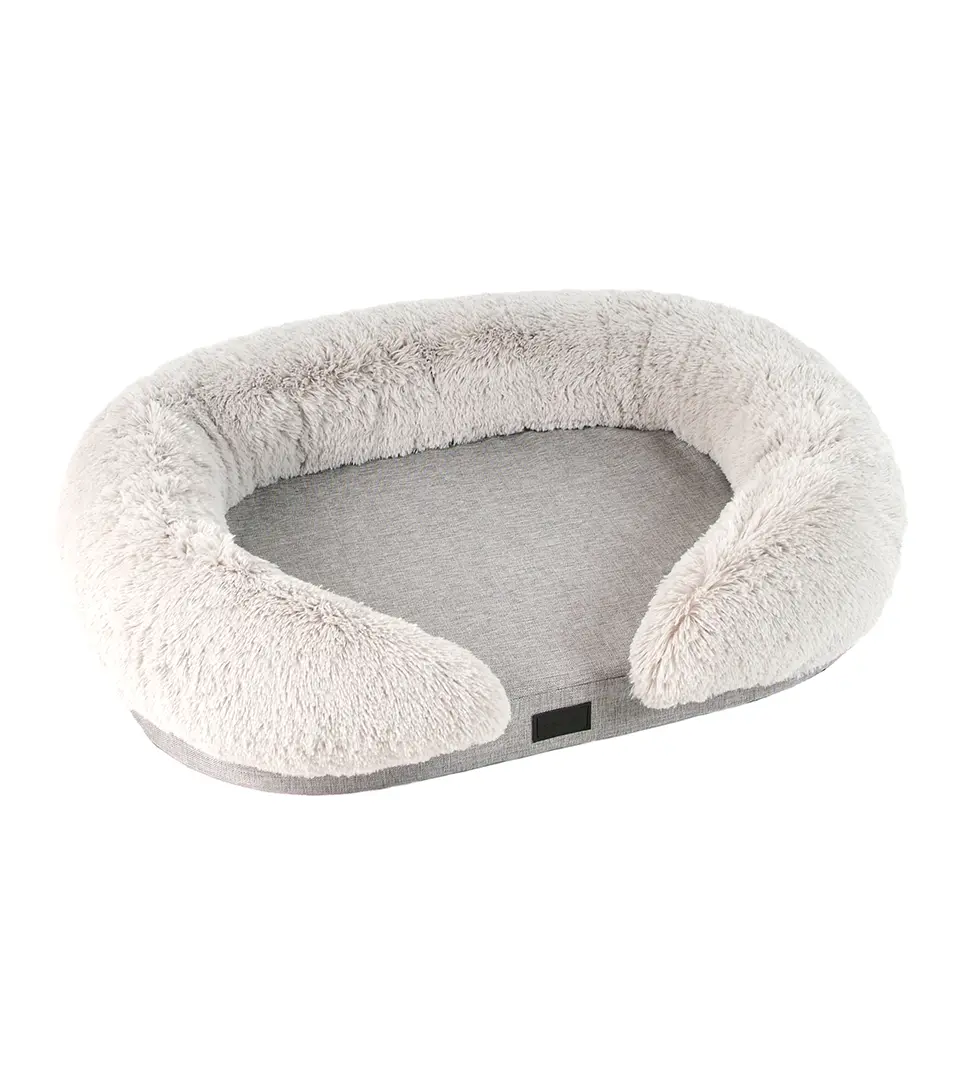 - Materiál: čalúnny materiál, okraj – soft fleece s dlhým vlasom, dno – protišmyková textília