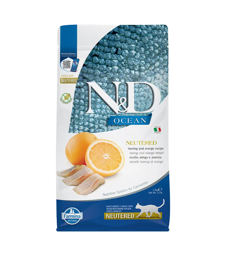 Farmina N&D cat OCEAN (GF) adult, neutered, herring & orange 1,5 kgSkladom25,12 €/ KS20,42 € bez DPH
