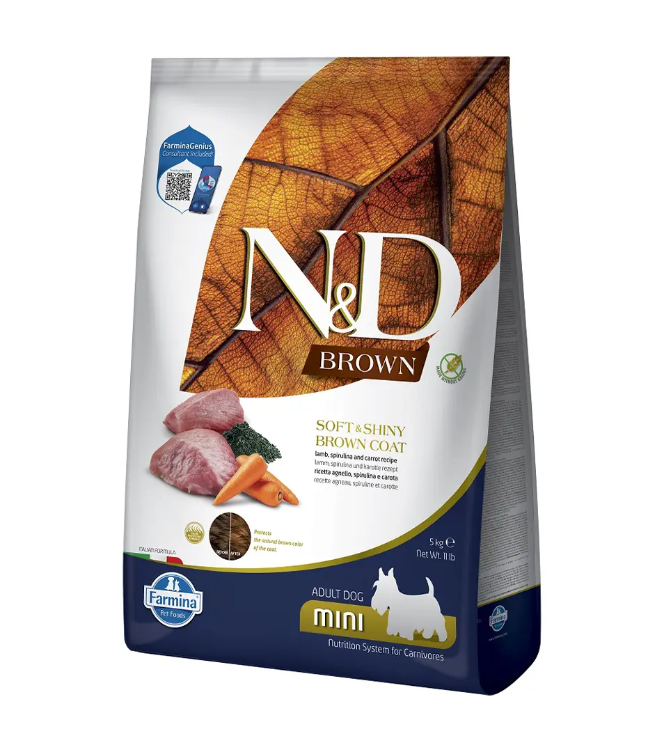 Farmina N&D dog BROWN (GF) adult mini, spirulina & carrot, lamb 5 kg