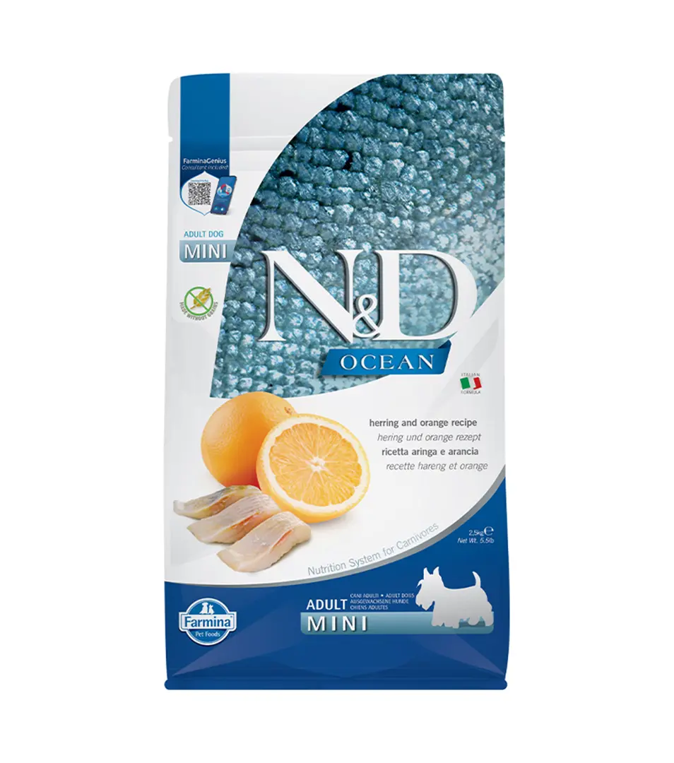 Farmina N&D dog OCEAN (GF) adult mini, herring & orange 2,5 kgSkladom30,35 €/ KS24,68 € bez DPH