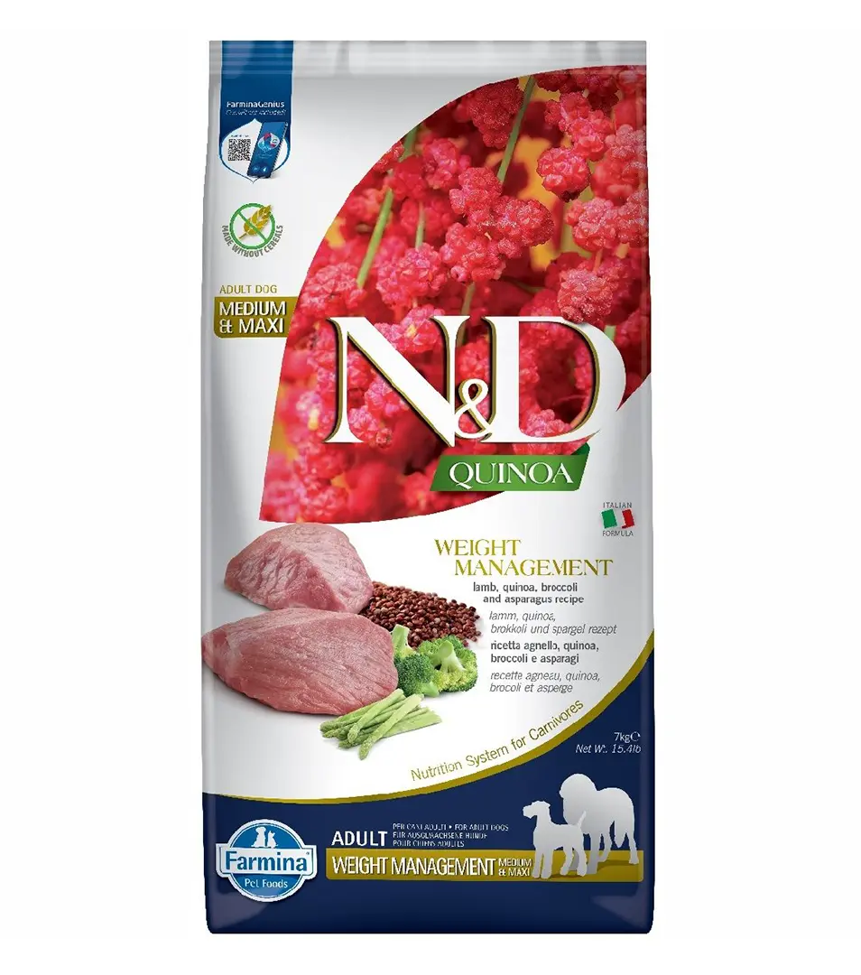 Farmina N&D dog QUINOA (GF) adult medium & maxi, weight managment, lamb & broccoli 7 kg