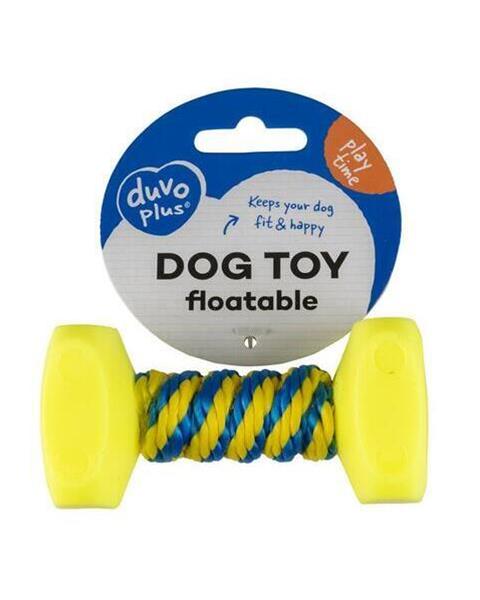 Silná žuvacia hračka, plávajúca. Vhodná pre všetky plemená psov. Ideálna na aportovanie. Okolo činky je lano, ktoré je ideálne na žuvanie a pomáha pri starostlivosti o zuby vášho psa.