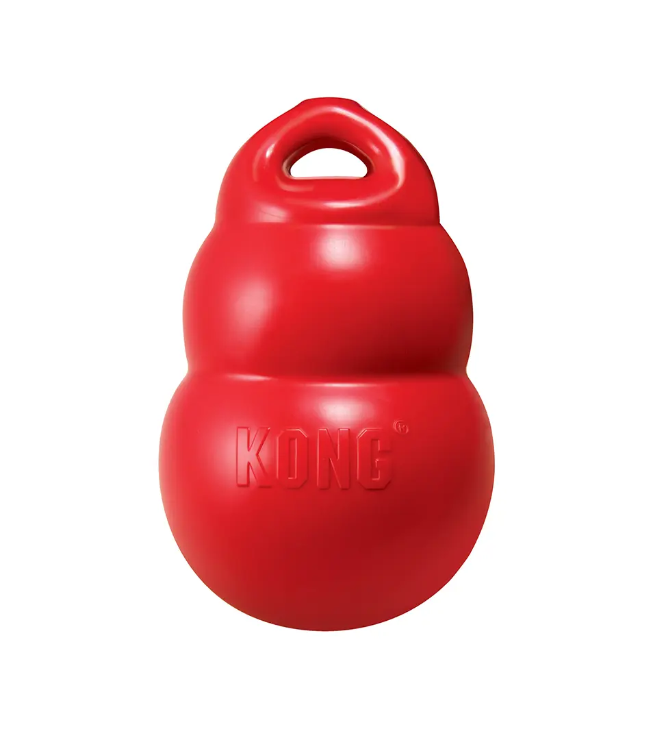 Ľahší materiál, vyrobený v klasickej siluete KONG, umožňuje zábavnú hru aportovania. Bounzer sa stlačí, keď ho pes chytí, čím sa uvoľní vzduch z hračky, čo podporuje vlastnú hru. A vráti sa späť do pôvodného tvaru. Odolná aportovacia hračka z hrubého materiálu pre dlhotrvajúcu hru, po stlačení vydáva slabý zvuk, ktorý priláka každého psa. Rukoväť uľahčuje hru ťahaním a hádzaním počas hier aportovania.