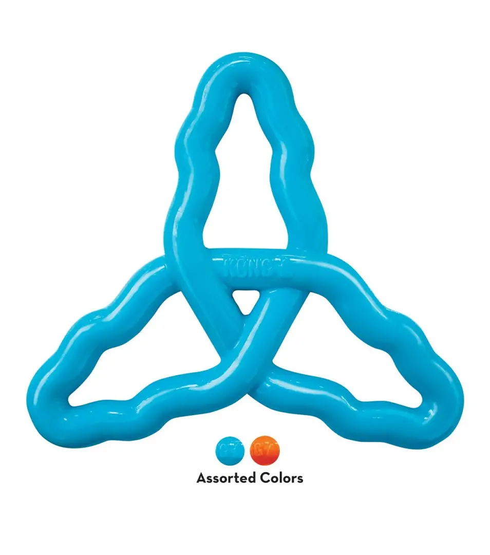 Hračka KONG Flyangle je vhodná na aportovacie a ťahacie inštinkty. Nepravidelný tvar poskytuje viacero bodov uchopenia pre interaktívnu zábavu.