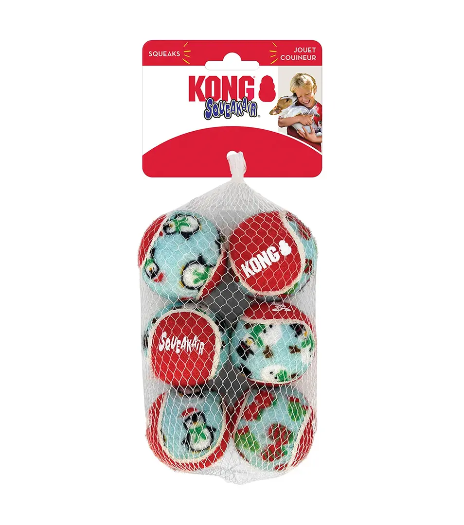 Hračka Kong Dog Holiday Airdog Lopta s pískatkom tenis, guma vulkanizovaná, bal. 6 kusov, S