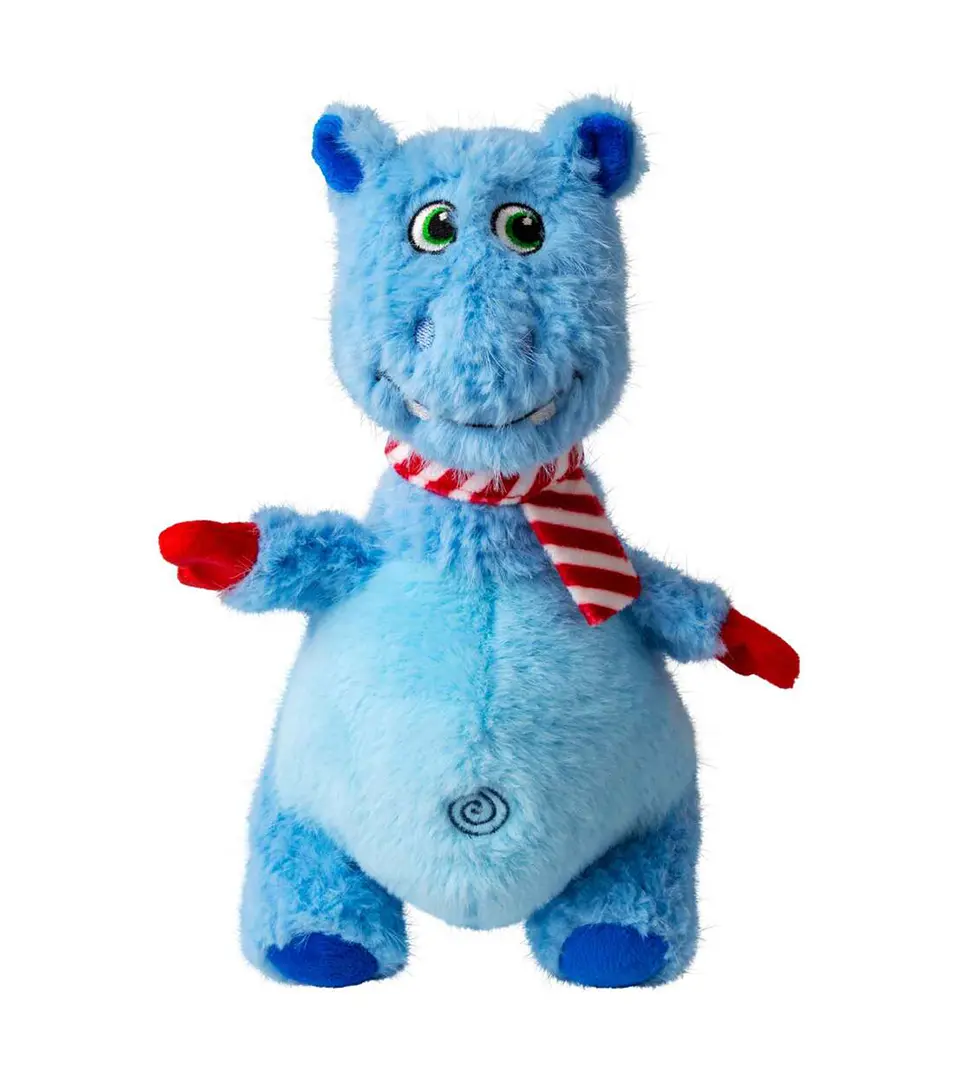 KONG® Holiday Knots Belly Hippo je konkurenciou pre Santovu misku plnú želé! Zvonku je mäkký a plyšový, ale vnútri má silnú a odolnú lanovú guľu, vďaka ktorej je jeho brucho guľaté a ťažké. Hustá vnútorná kostra z lanovej gule dodáva hračke váhu a pohyblivosť, čo podnecuje inštinktívne mlátenie, hádzanie a ľahké žuvanie. Pískacie zariadenie v hlave tohto hrocha vzbudzuje záujem psov a dodáva hre vzrušenie. Knots Belly Hippo je ideálny aj pre psov, ktorí radi nosia svoje hračky, ako aj na maznanie sa počas zdriemnutia. Oblečený podľa sezóny je perfektným vianočným darčekom!