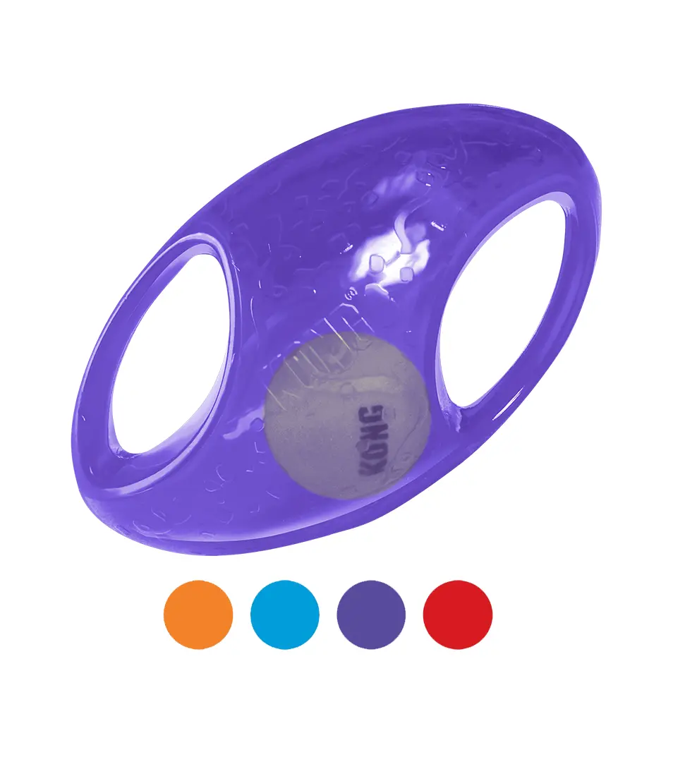 Hračka KONG Jumbler dva v jednom je lopta pre dvojnásobnú interaktívnu zábavu. Vnútro tenisovej loptičky a hlasné pískatko navádzajú ku hre, dva úchyty uľahčujú dvíhanie a trasenie. KONG Jumbler vydrží aj tvrdú hru, je ideálny na aport. Dostupný v dvoch veľkostiach a tvaroch, KONG Jumbler zabezpečí vzrušujúcu aktívnu hru pre vás a vášho psa.