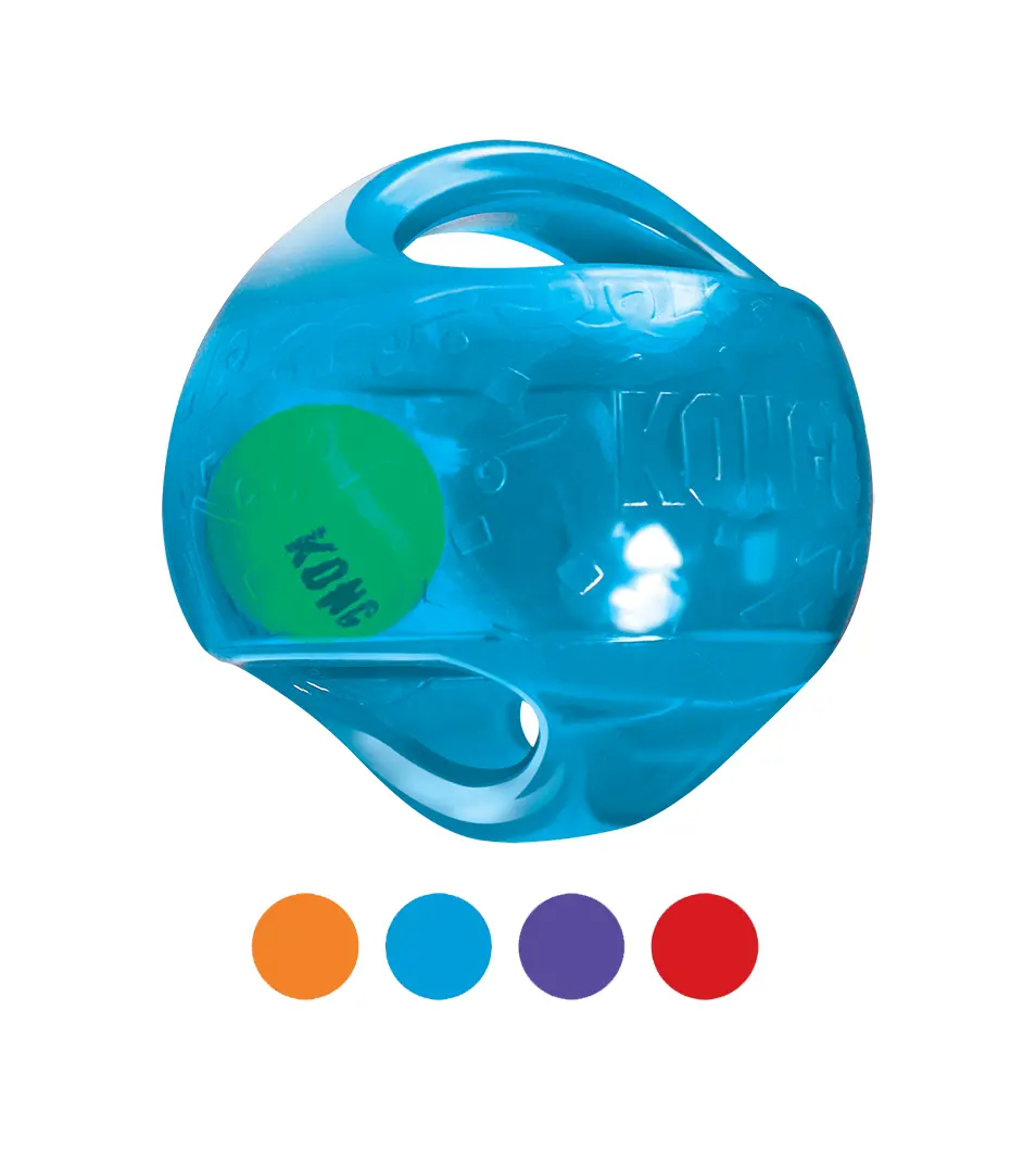 Hračka KONG Jumbler dva v jednom je lopta pre dvojnásobnú interaktívnu zábavu. Vnútro tenisovej loptičky a hlasné pískatko navádzajú ku hre, dva úchyty uľahčujú dvíhanie a trasenie. KONG Jumbler vydrží aj tvrdú hru, je ideálny na aport. Dostupný v dvoch veľkostiach a tvaroch, KONG Jumbler zabezpečí vzrušujúcu aktívnu hru pre vás a vášho psa.