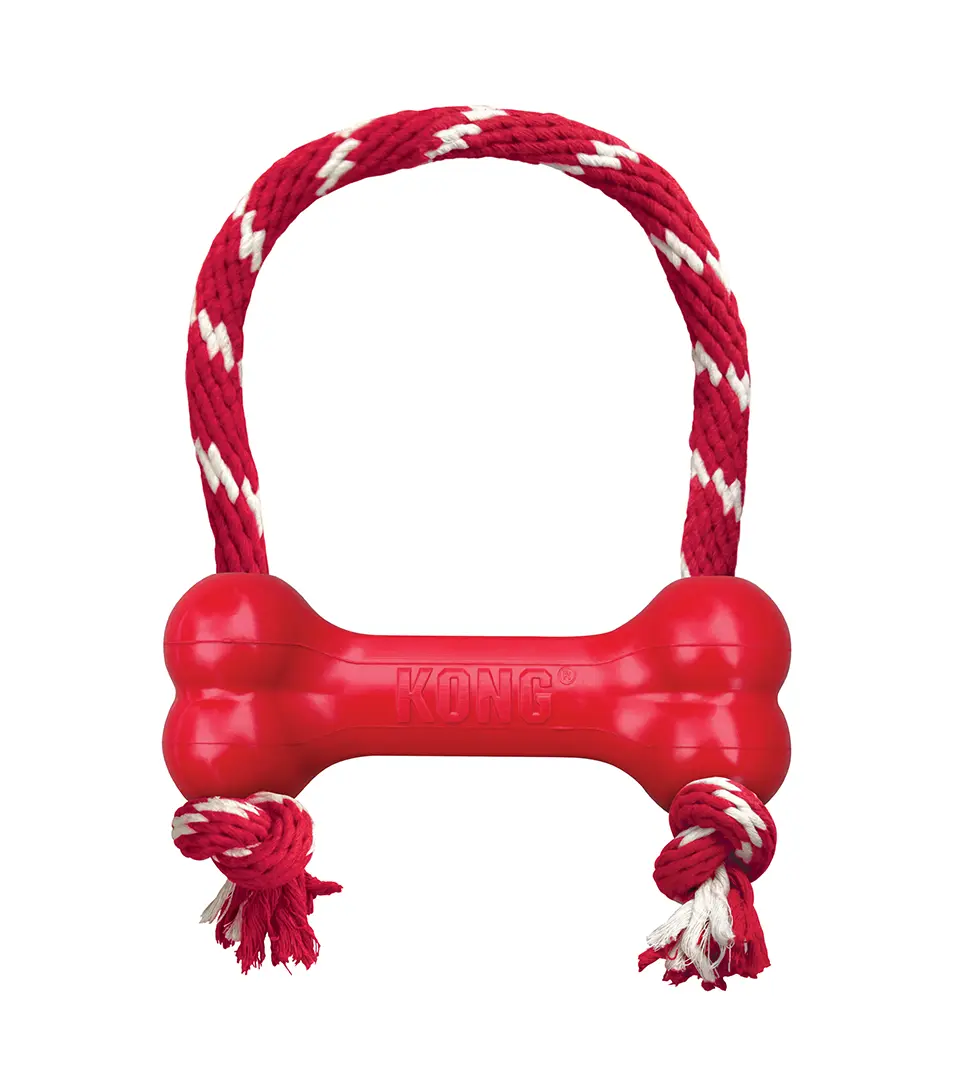 Hračka KONG Puppy Goodie Bone™ s lanom upúta šteňatá, ktoré rady ohrýzajú, vďaka prírodnému lanu je to ideálna hračka na uspokojenie inštinktívnej potreby šteňaťa. Kosť vyrobená z jedinečnej prírodnej gumy KONG pre šteňatá, učí šteňatá správne ohrýzať a zároveň uľavuje od bolesti ďasien pri prerezávaní zubov. Kosť ponúka tiež pridané potešenie z celobavlneného lana, ktoré šteňaťu poskytuje viac možností na žuvanie.