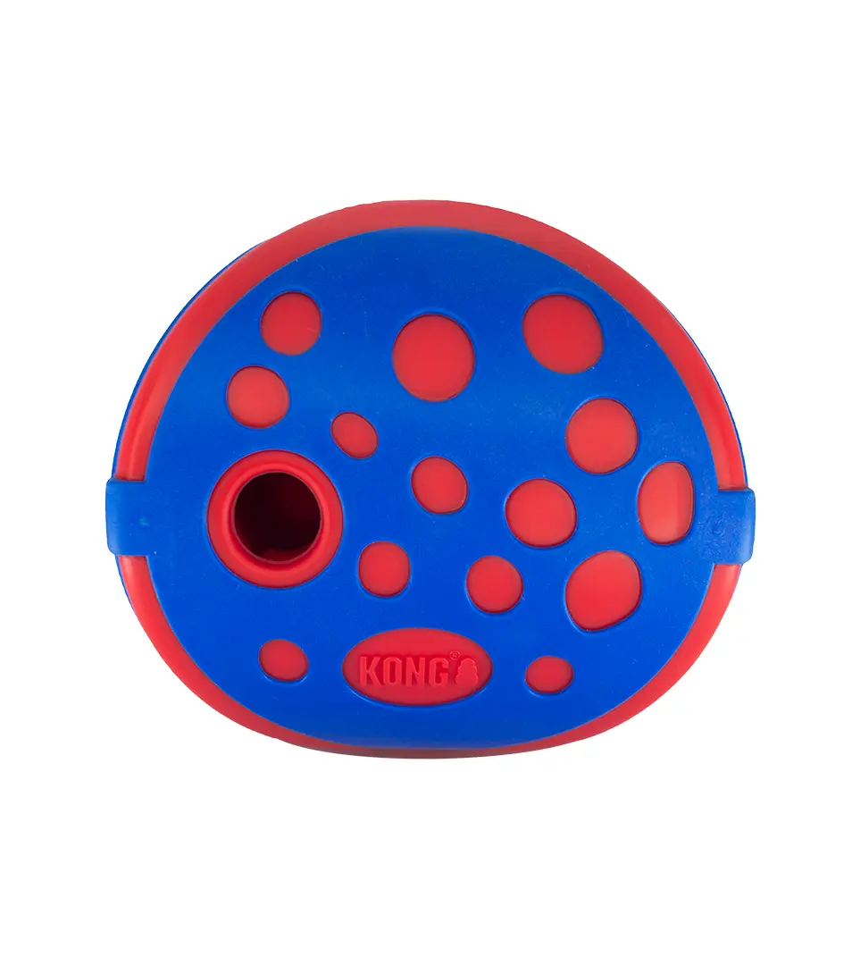 Interaktívna, plniteľná hračka KONG Rewards lopta je zároveň hlavolamom a spomaľovacou miskou.