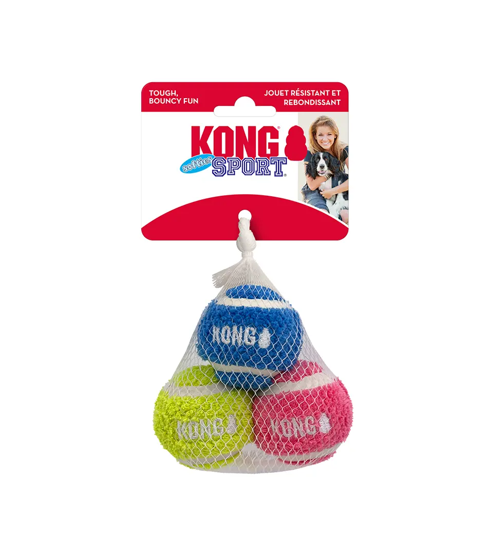 Mäkké loptičky KONG Sport kombinujú pohodlie plyšovej hračky s akciou tenisovej loptičky pre psy, ktoré milujú aportovať, nosiť, naháňať a túliť sa so svojimi hračkami.