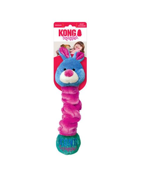 KONG Squiggles Postavičky sú pružné, poddajné a piskľavé zábavné hračky pre psov. Tieto farebné hračky sa dodávajú v sortimente štyroch roztomilých postavičiek a vyznačujú sa dlhým, pružným telom - plus majú pískadlá na oboch koncoch.