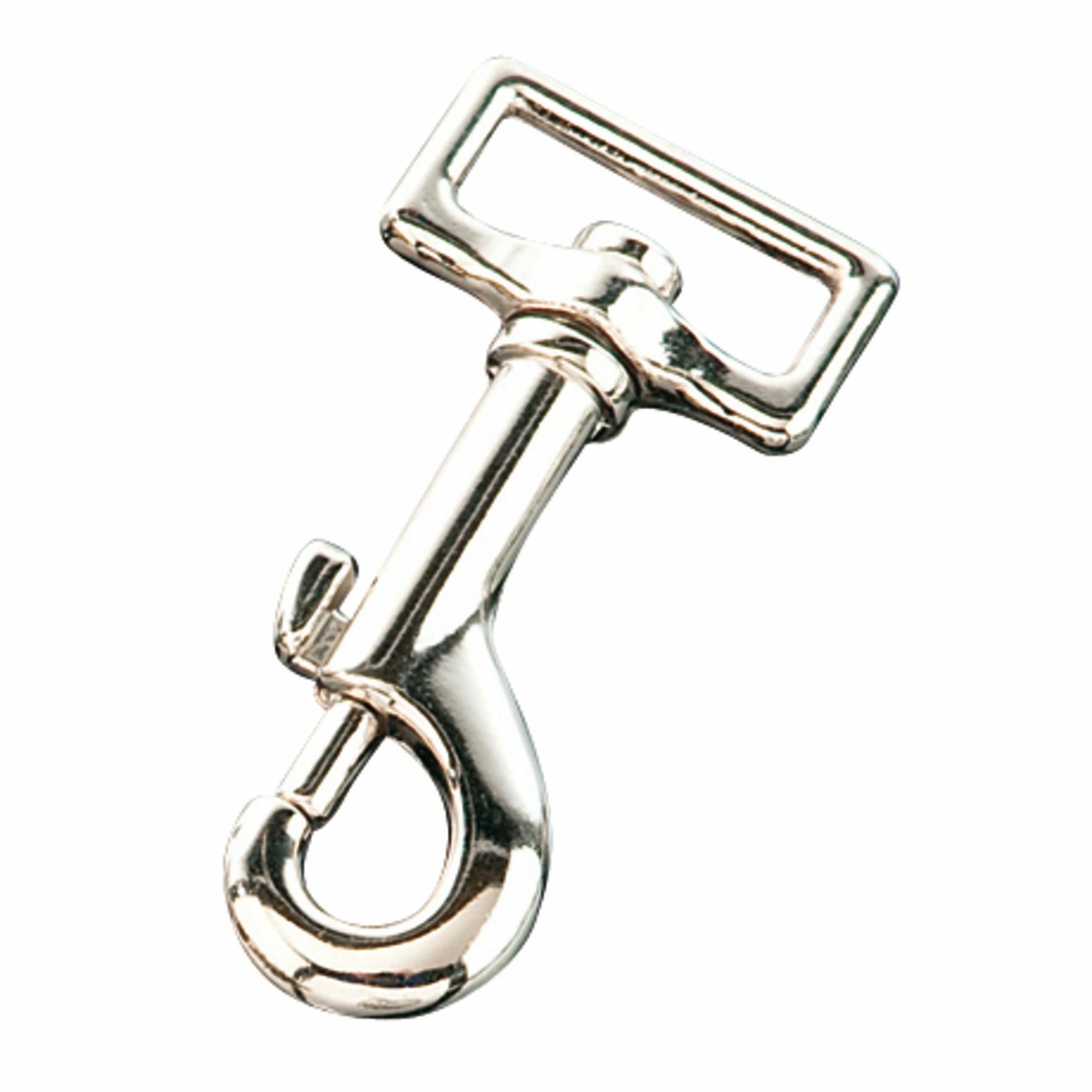 Otočná karabína so štvorcovým okom, odliatok zinku, poniklovaná.