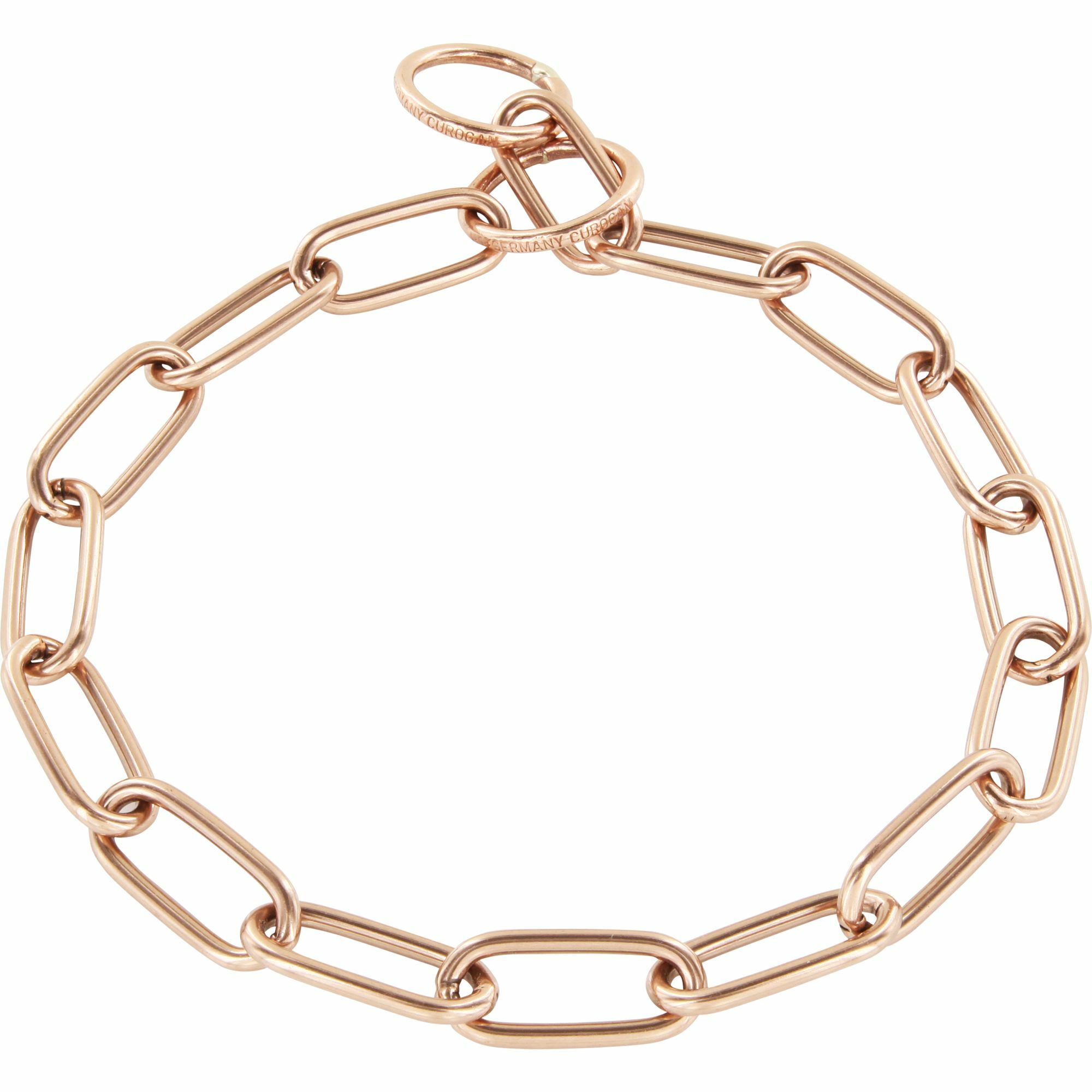Krásny vzhľad a pevnosť to sú obojky CUROGAN - zliatina medi a cínu s vysokou medenou časťou. Neobsahuje nikel, ktorý je najčastejšou príčinou pri alergických reakciách citlivých psov. Tento obojok s extra veľkými článkami je vďaka veľkosti a tvaru článkov dokonale použiteľný pre plemená s dlhou a jemnou srsťou.