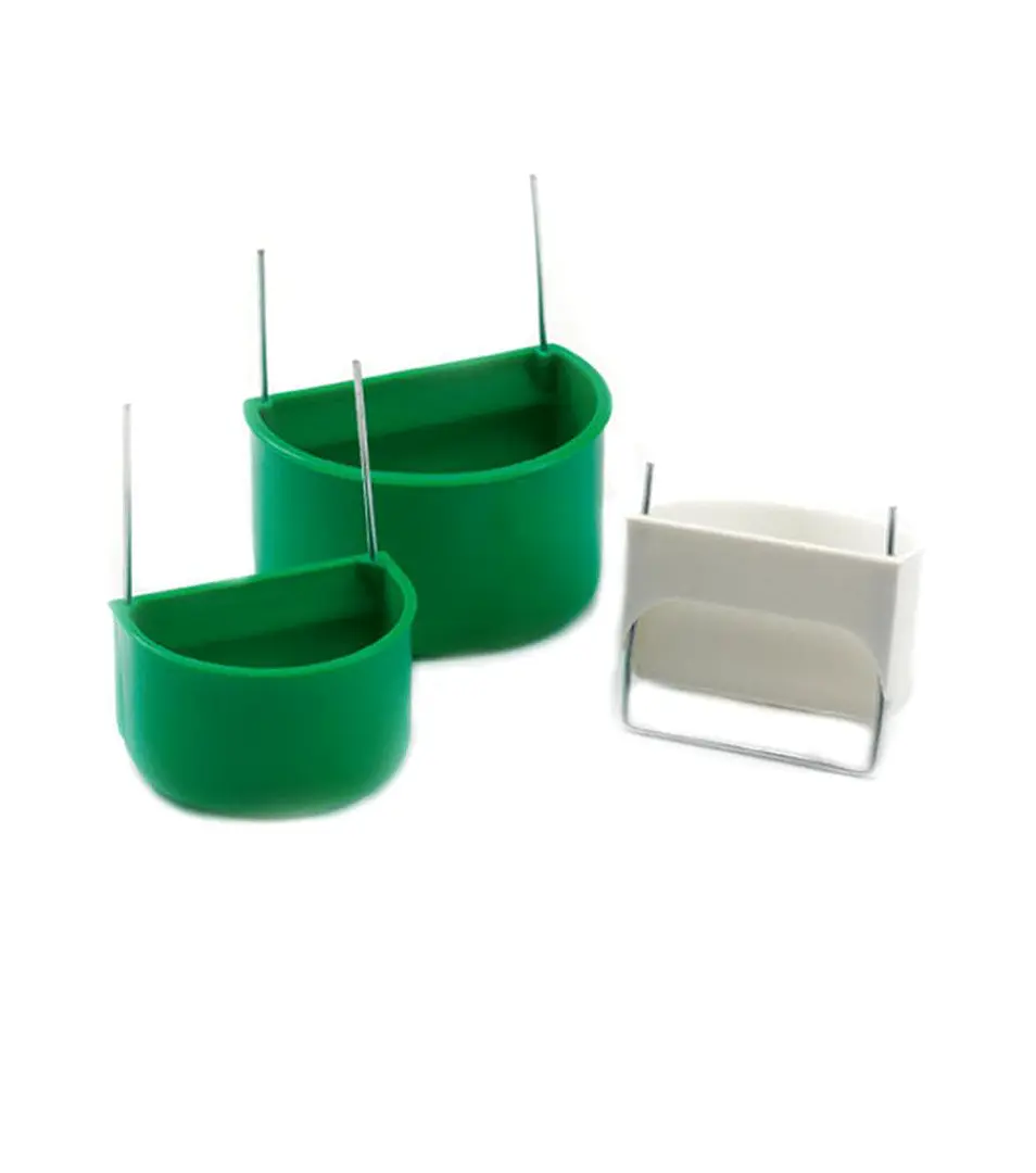 Plastové kŕmidlo s kovovými držiakmi pre jednoduché zavesenie do klietky. Kŕmidlo je ľahko umývateľné.