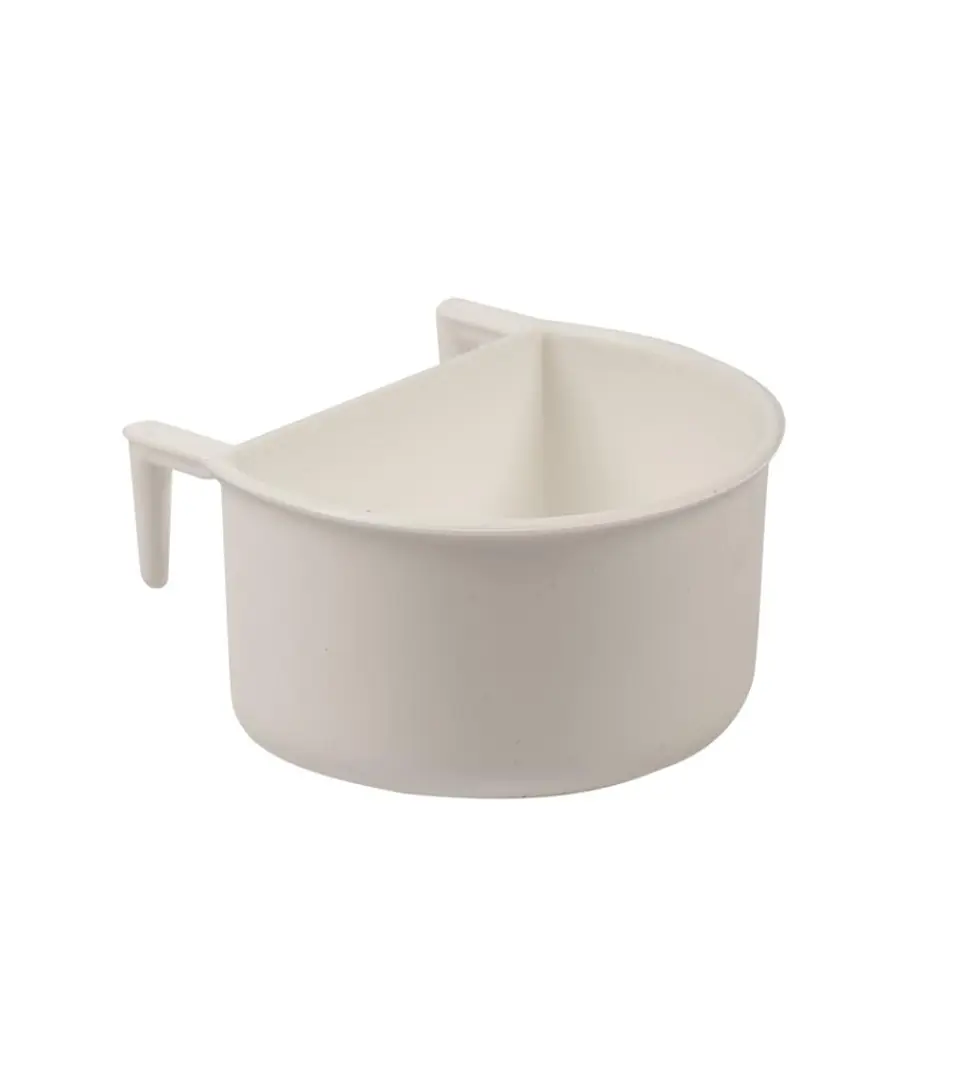 Biele plastové kŕmidlo s držiakmi pre jednoduché zavesenie do klietky. Kŕmidlo je ľahko umývateľné.