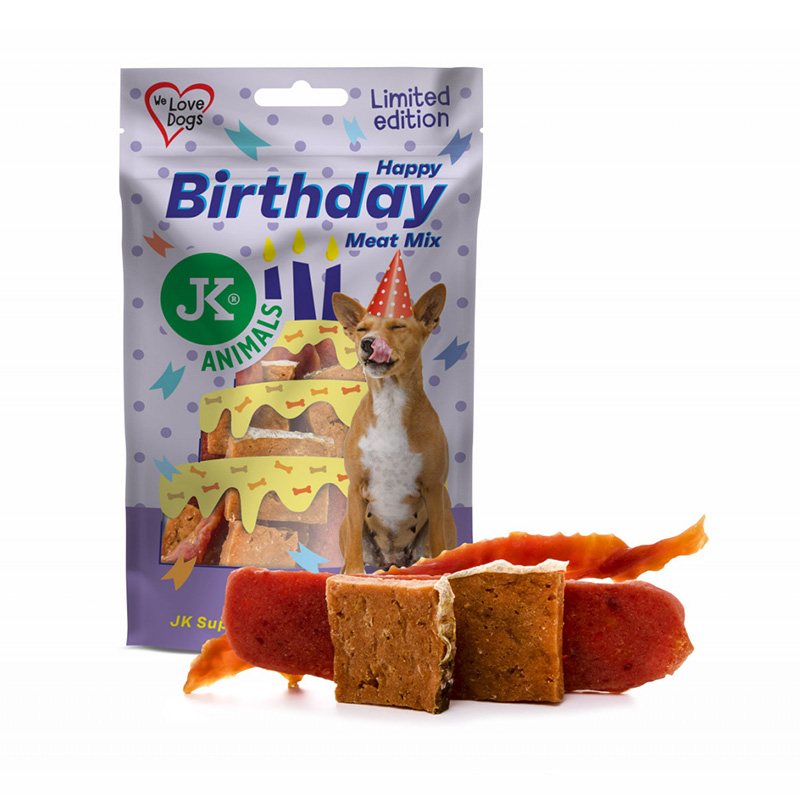 NARODENINOVÝ MÄSOVÝ MIX. Mix najlepších mäsových maškrt od JK ANIMALS. Doplnkové krmivo pre psov. Vynikajúca pochúťka pre psov každého veku, slúži ako maškrta alebo odmena pri výcviku.