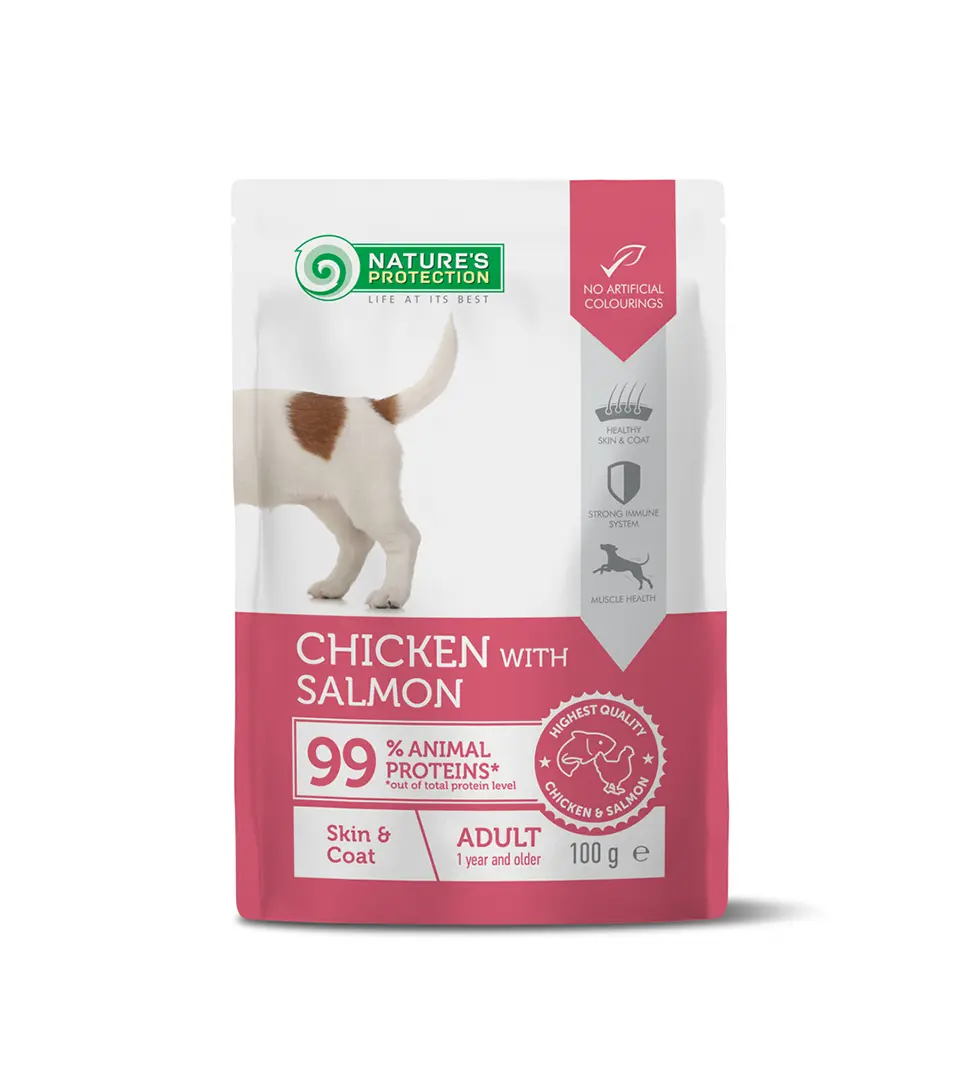 Natures P KAPSIČKY dog adult skin & coat chicken & salmon 22x100 gSkladom18,67 €/ KARTON15,18 € bez DPH
