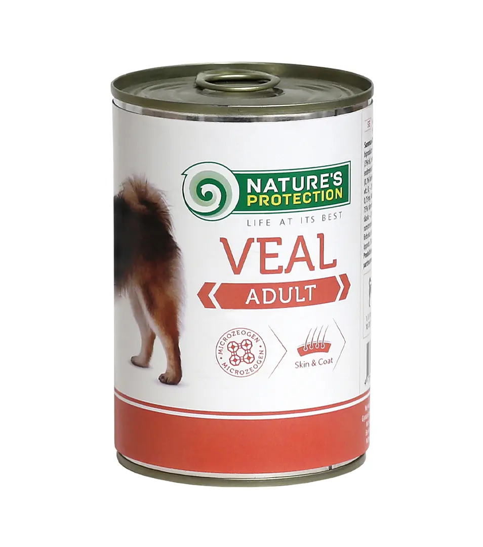 Nature's Protection je superprémiová konzerva pre dospelé psy malých plemien s teľacím a kačacím mäsom, podávaná v lahodnom vývare a doplnená minerálmi. Hlavným zdrojom bielkovín je kvalitné teľacie a kačacie mäso. Toto krmivo je mäkké a ľahko žuvateľné, zloženie mäsa a vývaru je vysoko stráviteľné. Konzervy Nature's Protection sú navrhnuté tak, aby spĺňali rôzne potreby mladých a dospelých psov. Hlavným zdrojom bielkovín v tomto krmive pre domáce zvieratá je mäso s vysokou výživovou hodnotou.