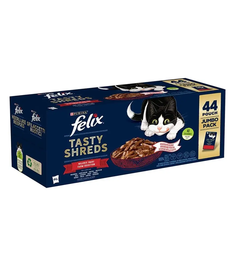 Nestlé FELIX Tasty shreds cat Multipack kura&hovädzie&kačica&morka v šťave kapsička 44x80 gSkladom23,25 €/ BAL18,90 € bez DPH