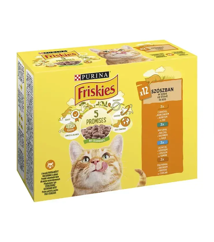 Nestlé Friskies cat Multipack kura&kačica&losos&morka kapsička 12x85 gSkladom7,27 €/ BAL5,91 € bez DPH