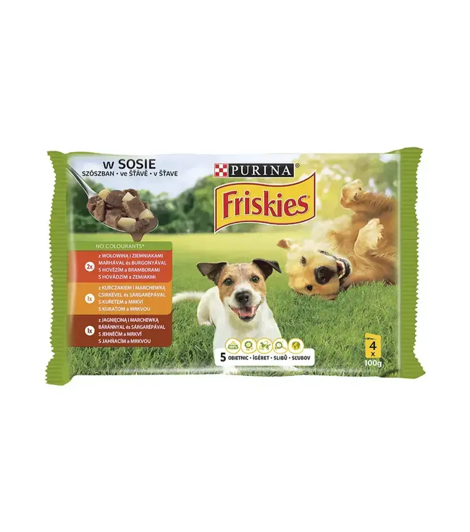 Nestlé Friskies dog Adult Multipack hovädzie&kura&jahňa kapsička 4x100 gSkladom2,04 €/ KS1,66 € bez DPH
