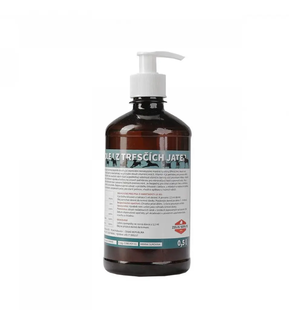 Olej z tresčej pečene je kŕmny doplnok obsahujúci esenciálne nenasýtené mastné kyseliny EPA & DHA, ktoré tvoria nevyhnutnú súčasť výživy. Olej z tresčej pečene je tiež bohatý na prírodný obsah vitamínov A & D. Vitamín A je potrebný pre zrak, reprodukciu, rast epiteliálnych buniek, ktoré sú súčasťou všetkých tkanív a podmieňujú odolnosť slizničnej bariéry voči prenikaniu infekcie. Vitamín D sa podieľa na procese delenia buniek, vstrebávaniu vápnika a fosforu na úroveň potrebnú pre mineralizáciu kostí a pevnosť zubov. Olej z tresčej pečene je prospešný pre celkový zdravotný stav i prevenciu bežných ochorení. Je bezpečný pre gravidné a laktujúce suky a šteňatá. Olej zvyšuje kvalitu srsti a pokožky a má vplyv na korektný vývoj plodu.
