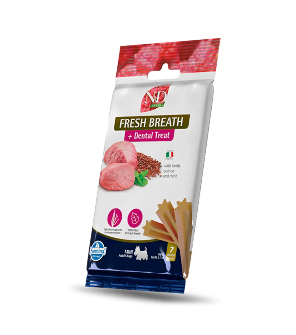 Pamlsok Farmina N&D Quinoa Dog Fresh Breathe Adult Mini 60gSkladom3,48 €/ KS2,83 € bez DPH