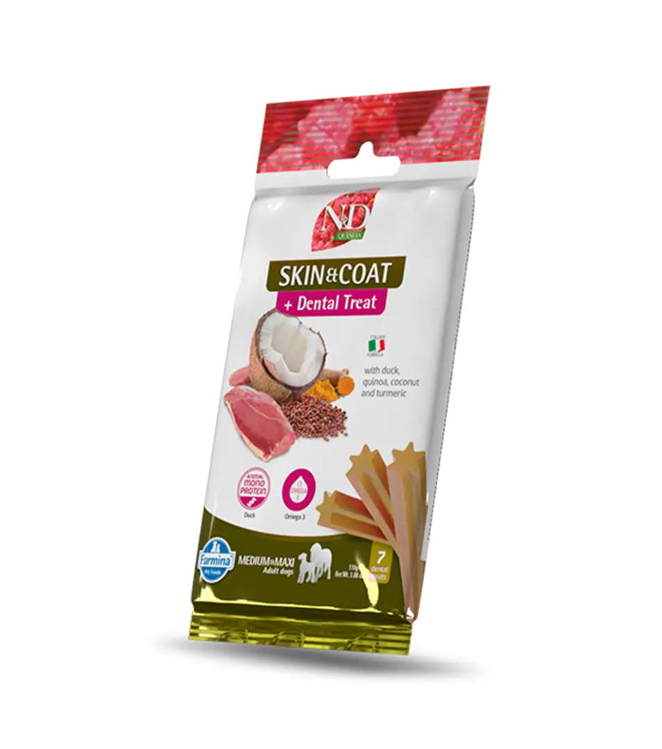 Pamlsok Farmina N&D Quinoa Dog Skin Coat Duck Adult medium & maxi 110gSkladom4,18 €/ KS3,40 € bez DPH