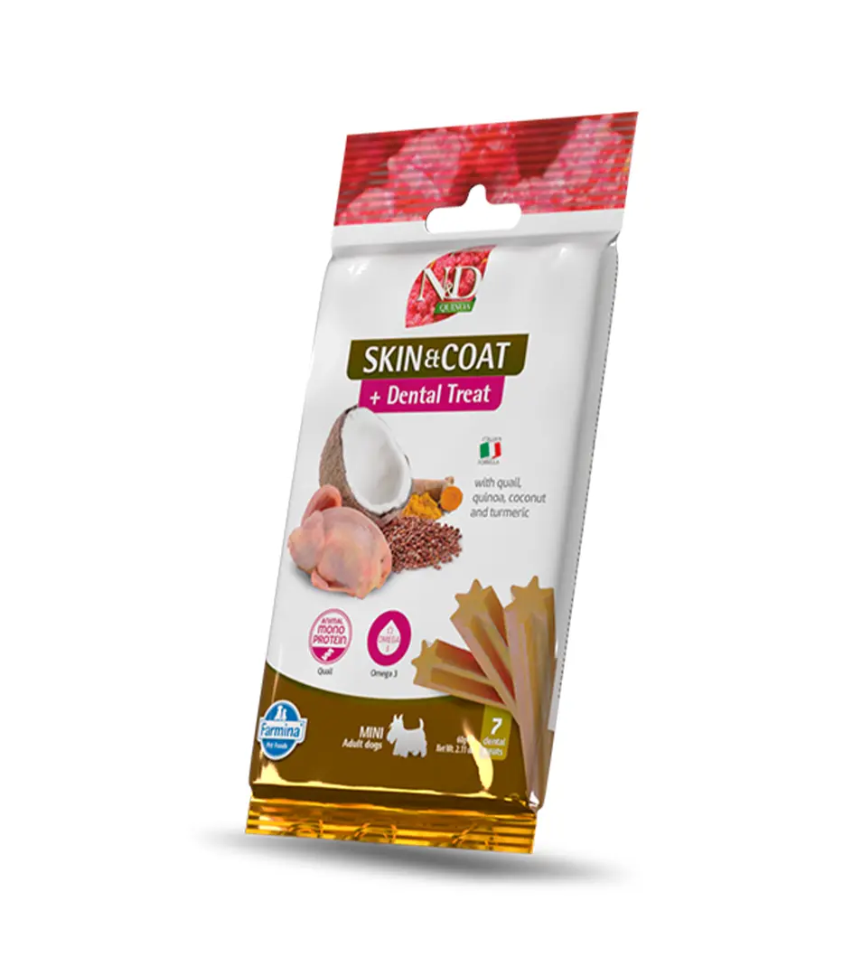 Pamlsok Farmina N&D Quinoa Dog Skin Coat Quail Adult Mini 60g